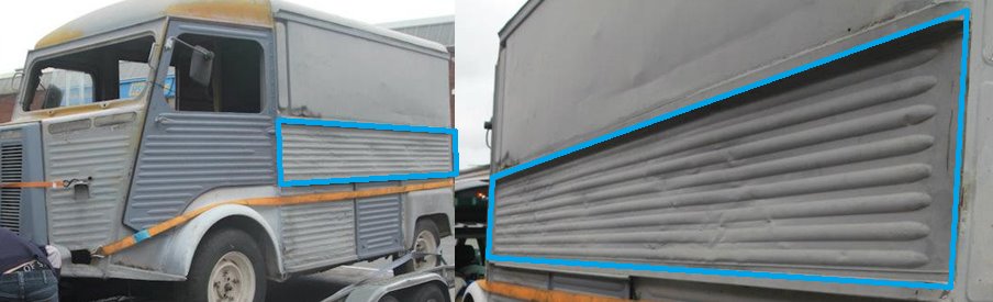 12th December 2012 - De-Fleet agree to Paint and restore the Vehicles bodywork. Most of the Resprayers we approached either did not reply or said it was too big a job. De-Fleet are on their sixth Citroen HY, so know what they are doing. They have also restored Classic cars and Coaches/Buses, so must have a really strong mix of skills The bad news is that they have got three other Citroen Hy's queued up waiting to be restored so it might be a few weeks before they can start ours.