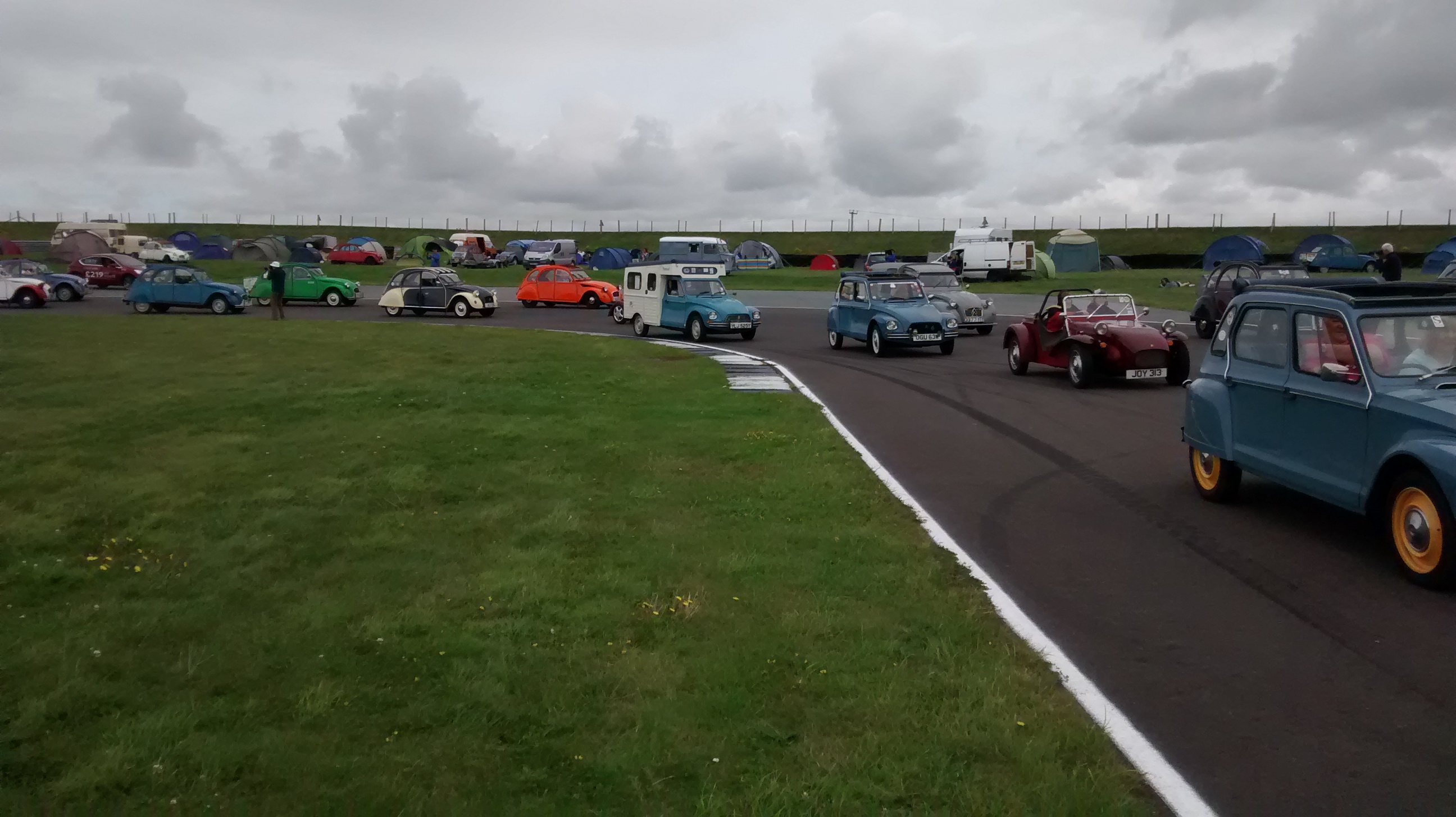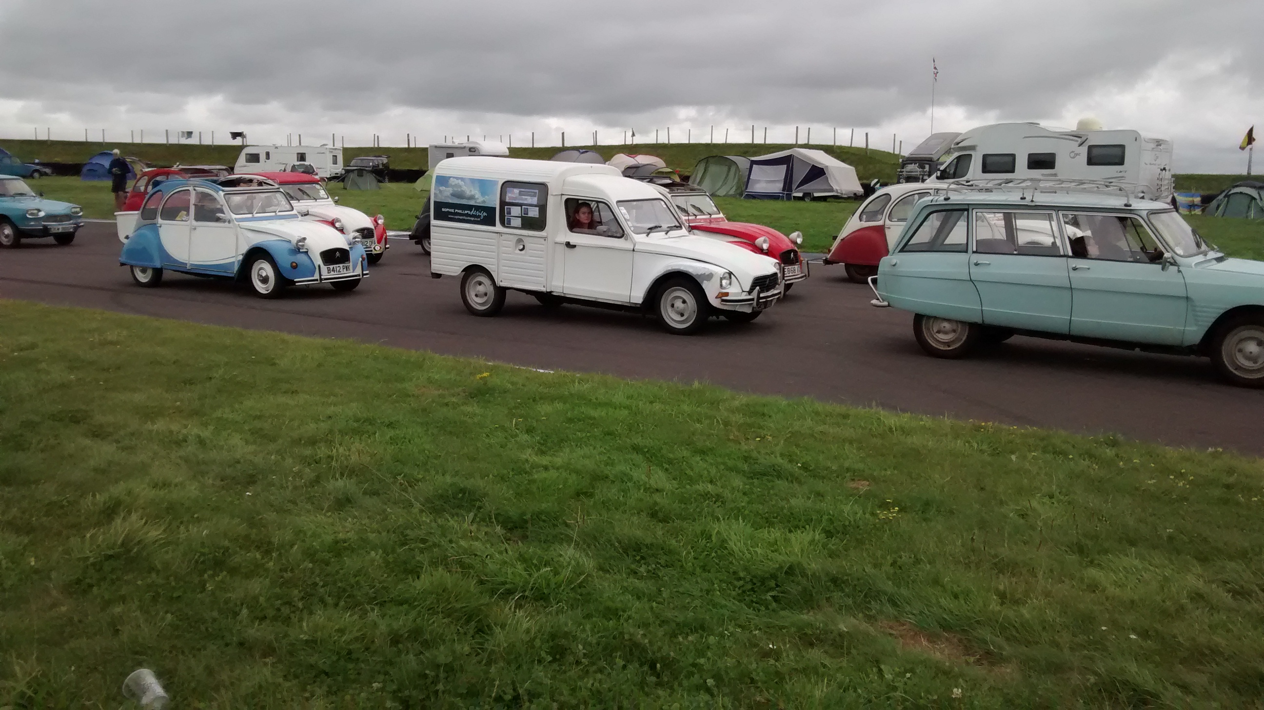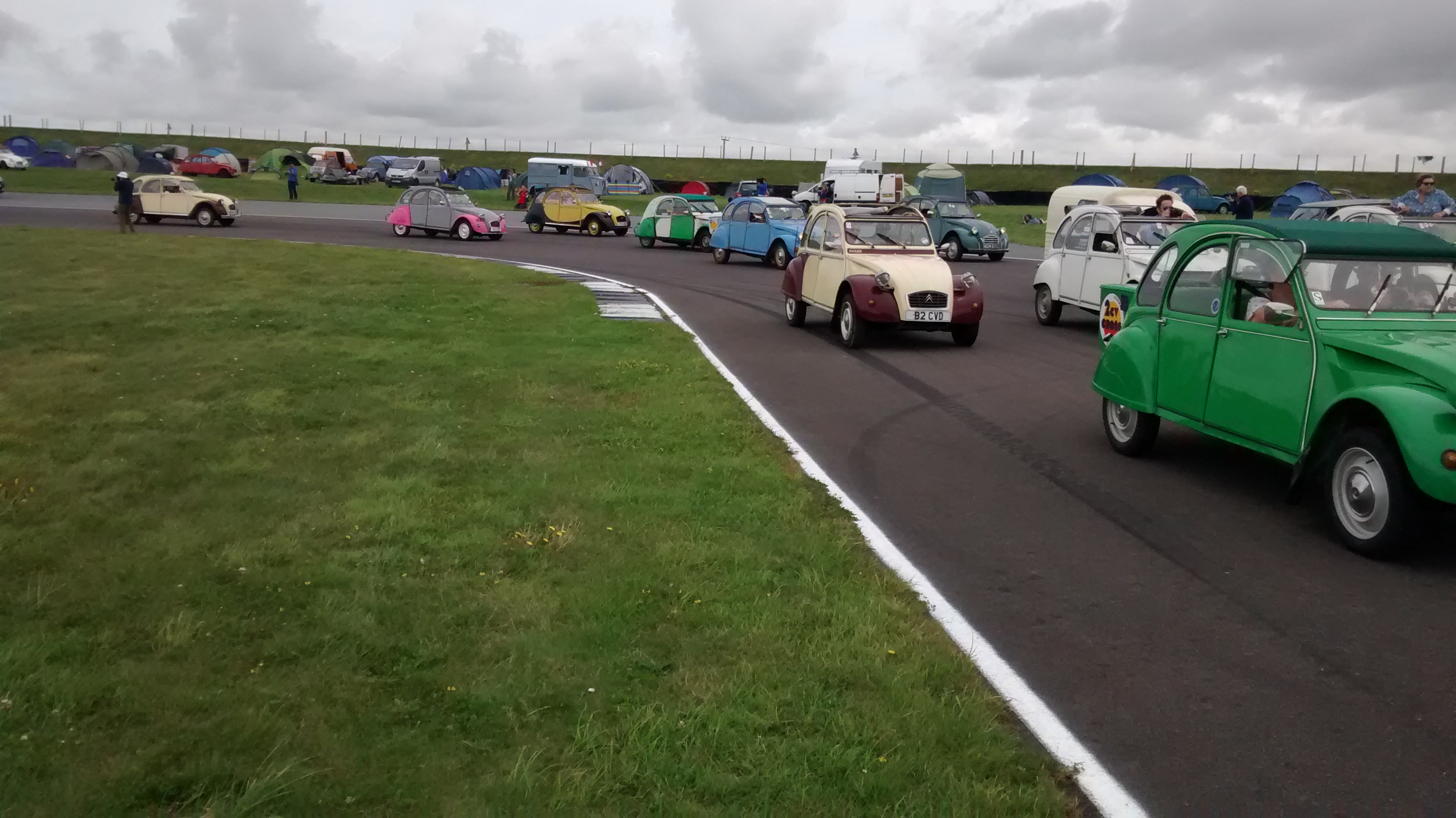 The 2CVGB August 2014 National Rally parade lap prior to the start of the 2CV 24 hour Anglesey racing.