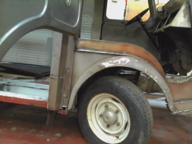 He started this week, cutting out all the rotten metal, making new panels to fit, then welding them in place.