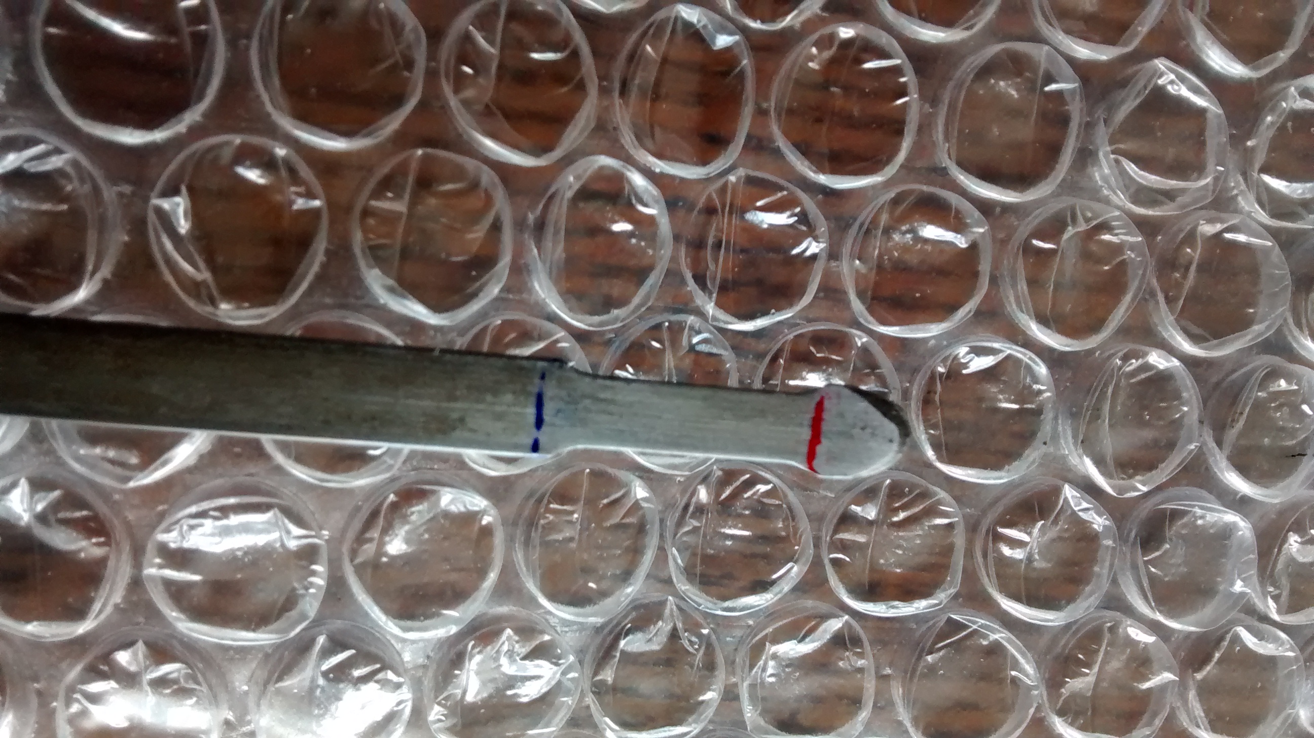 Oil level should be below the part of the Dipstick where it tapers in (where we have drawn a Blue line) and above the lower part of the Dipstick where it tapers out again (where we have drawn a Red line). This check must be done only on level ground and after the engine has been stopped for at least 5 minutes. Don't let it drop below the Lower level or Engine damage may result. Overfilling it can also lead to engine issues.